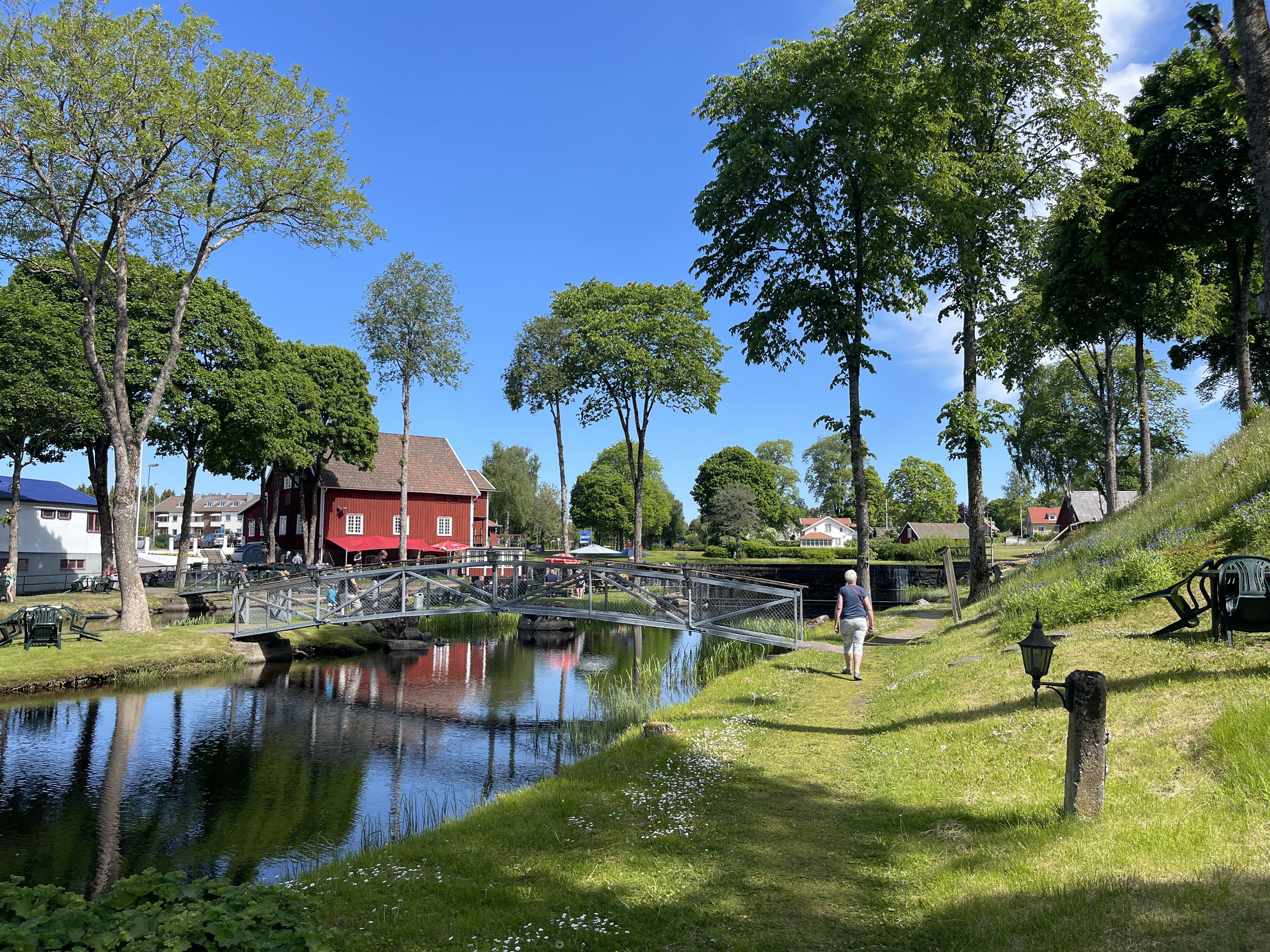 29 mei. We rijden weer een eind naar het zuiden. Overnachten in Gullspång. Een camping van het soort dat je niet gauw weer tegen zal komen. Het terrein is prachtig maar bij de receptie denk je “waar ben ik in hemels naam terecht gekomen”. Bij de entree is het een waar museum. Achter elke deur schuilt wel weer iets aparts. Een camping met veel water, bruggetjes, verborgen plekjes en midden in de natuur.