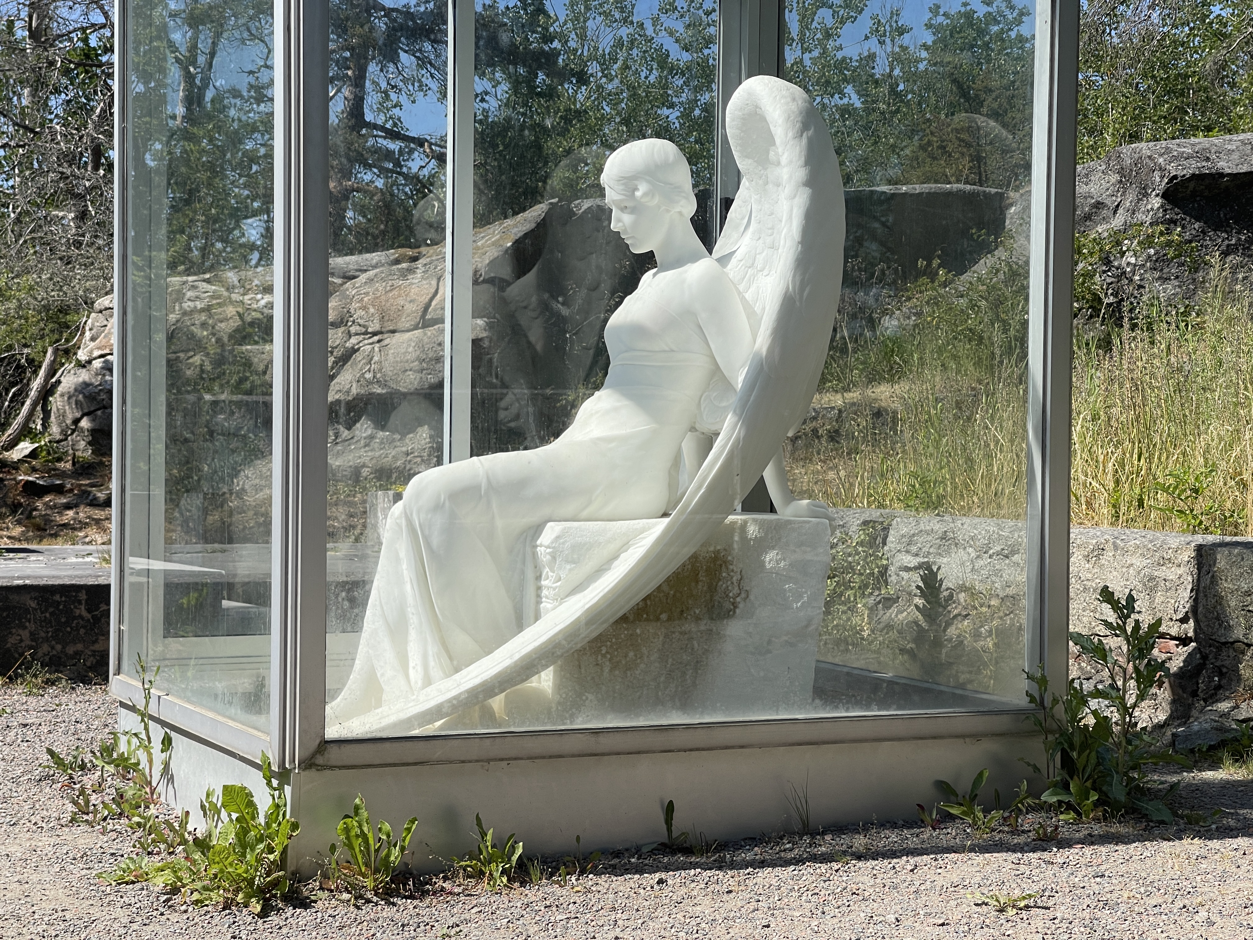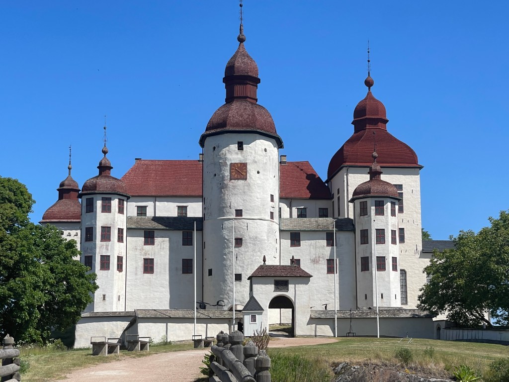 9 juni. De verjaardag van Gradus. Ik liep al vroeg buiten en werd beloond. In het weiland voor de camper liep een prachtig hert. Mijn cadeautje. Het was echt genieten op die afgelegen, super rustige plek. We rijden weer die dirt road terug naar de hoofdweg, en hebben het bezoekerscentrum van dit vogelmeer gemist omdat het helemaal aan de andere kant lag. Voor vandaag staat het Läcko slot op het programma, schijnt het meest gefotografeerde kasteel van Zweden te zijn. We zitten inmiddels aan de west kust. Op de parkeerplaats is ook een camperplaats maar daar willen we nu niet blijven, gravel dus veel stof. Rondleidingen zijn er niet op de tijd dat wij er waren. Het slot ligt weer uitmuntend, niet te geloven. Al die kastelen die we bezocht hebben liggen overweldigend mooi. Deze op het puntje en aan drie kanten water.