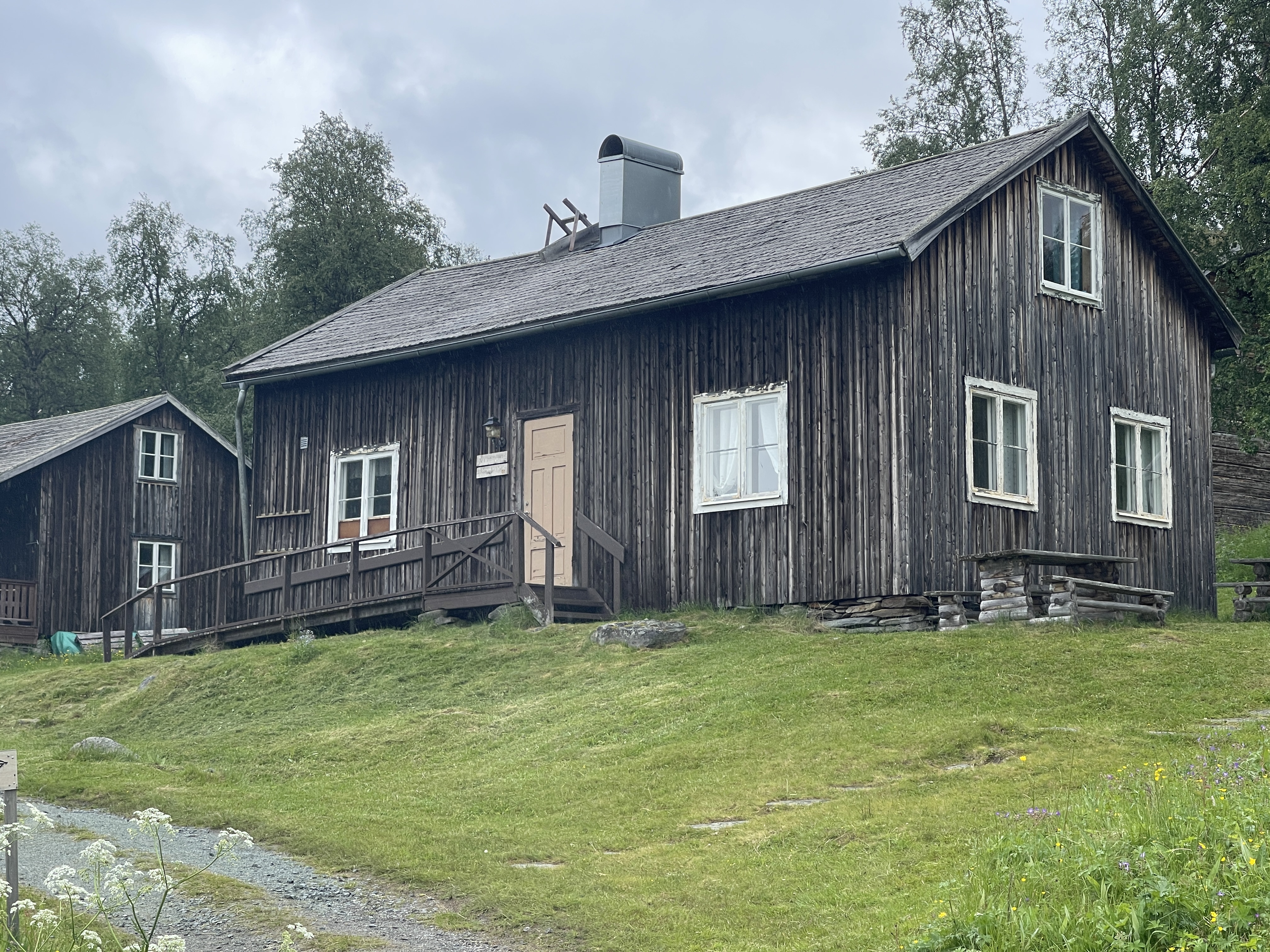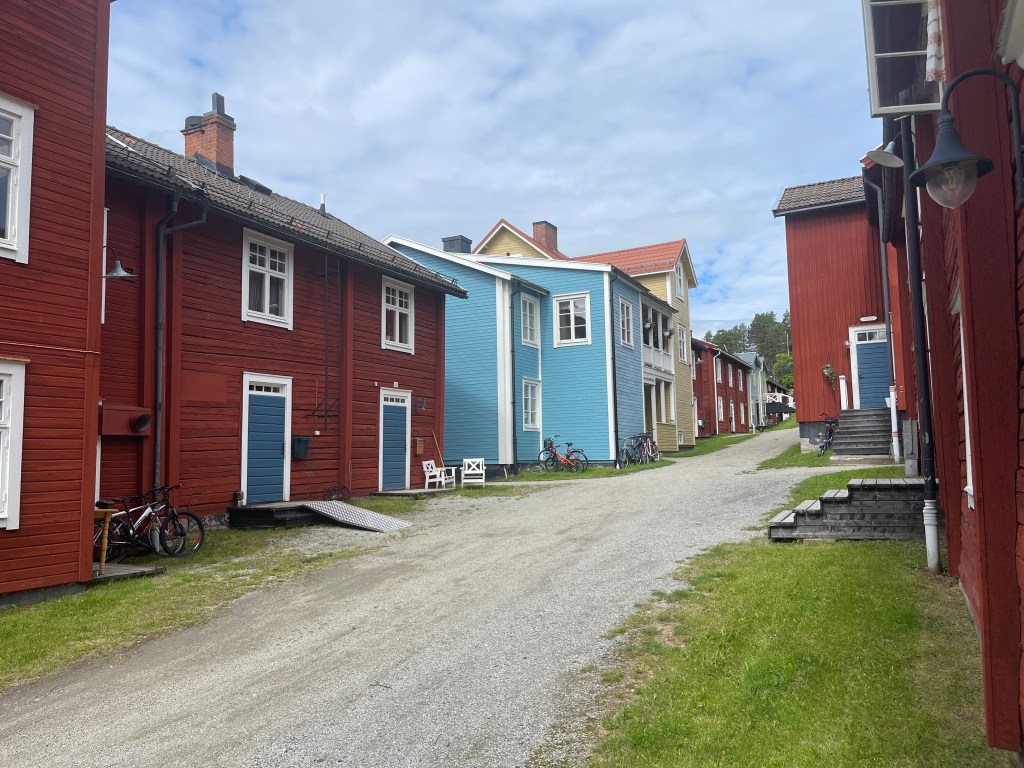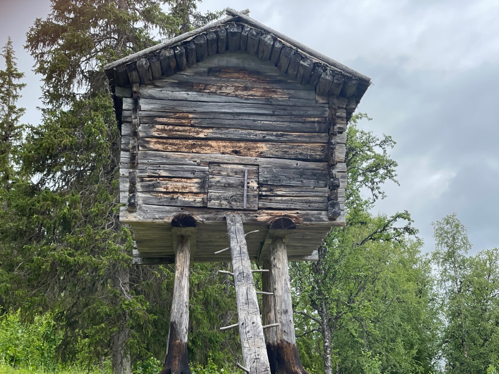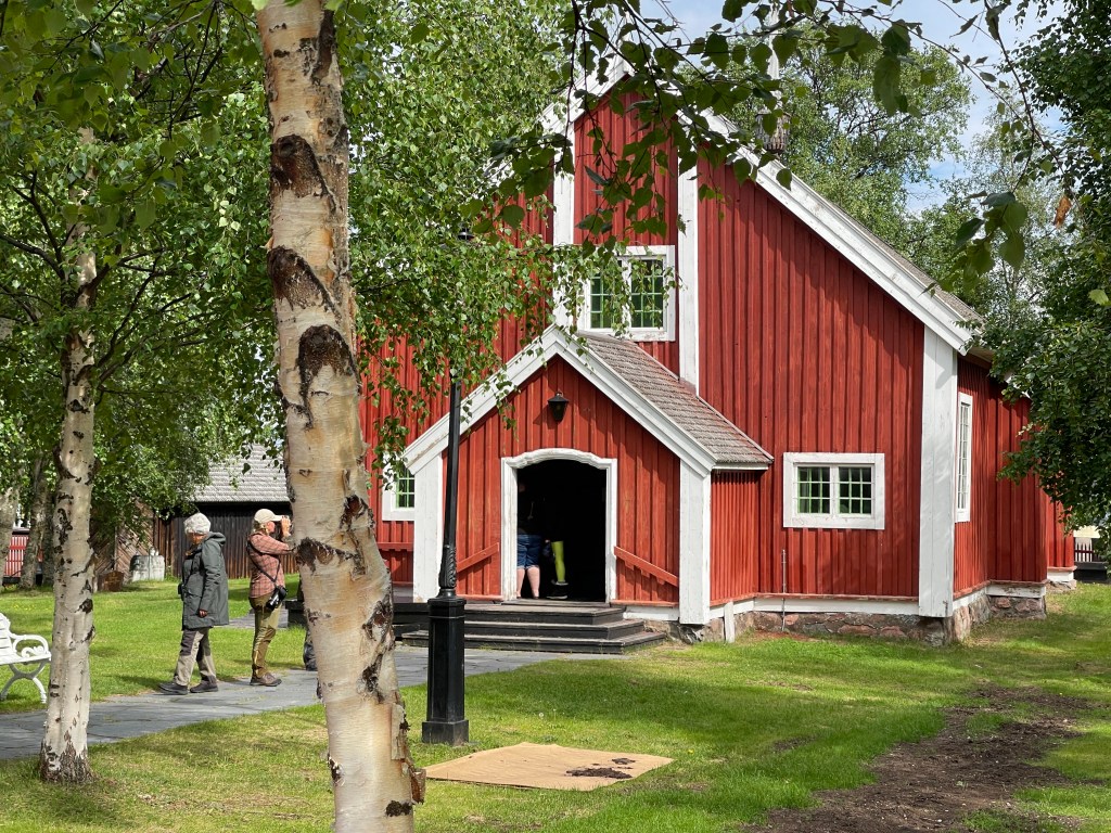 De Sami vieren in dit dorp nog altijd de midzomernacht. Wij overnachten op de naturcamping. Prachtige plek en voor het eerst wordt gevraagd om contant te betalen. Dat konden we niet. Dan maar met euro’s. De plek is te mooi om weg te gaan.