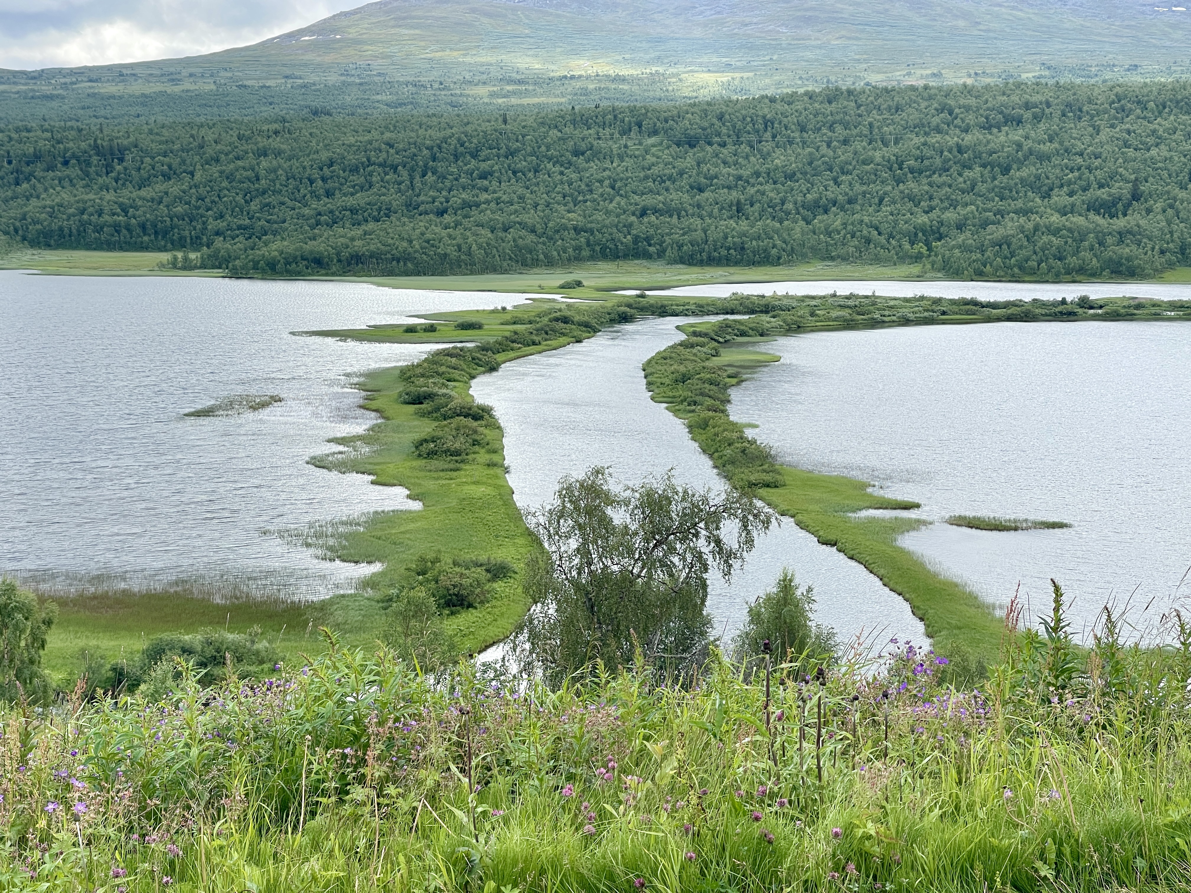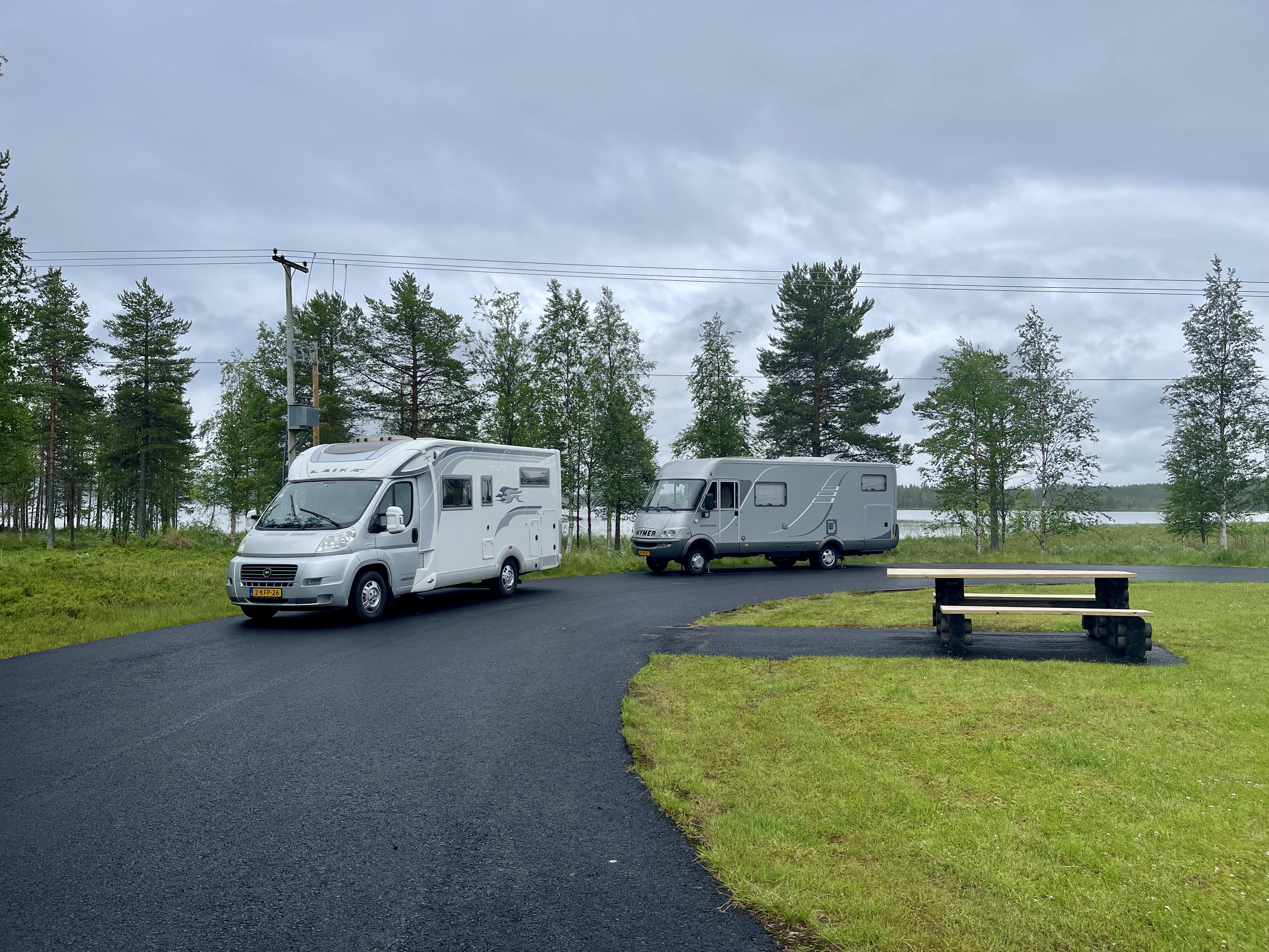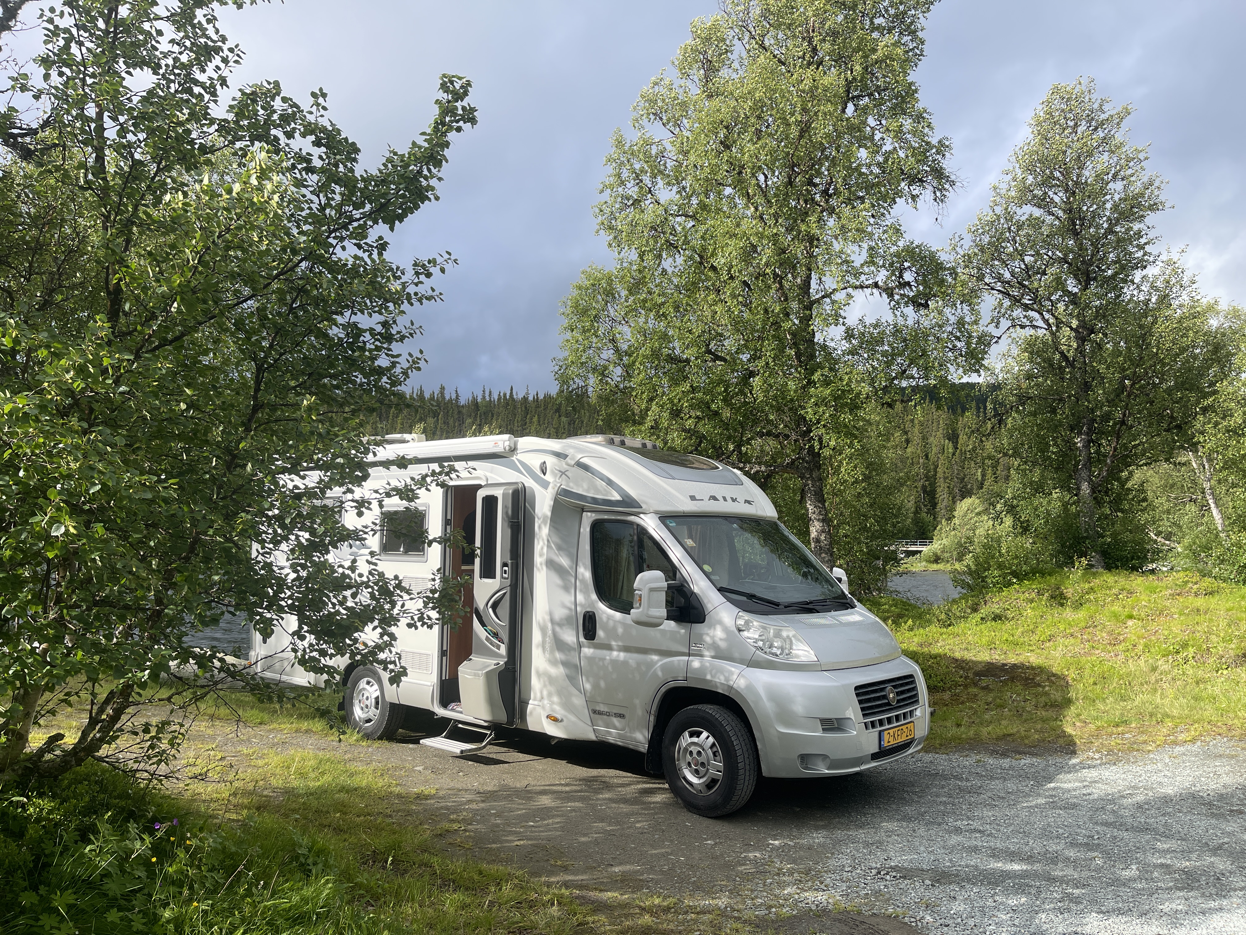 28-06 Het was vanmorgen de eerste keer dat het warm genoeg was om buiten te ontbijten. Vandaag rijden we naar Zweden. Het eerste stuk van de E10 toonde een compleet andere natuur. Mooie weg en verderop langs het Torneträck meer. We zijn vroeg gestopt. Het was nu nog mooi weer en morgen weer regen voorspelling. Vanmiddag in de schaduw (in de zon te warm) mijn boek uit gelezen. “Verloren Grond” van Murat Isik. Wat een contrast. Mijn “NU” en zijn “TOEN”.