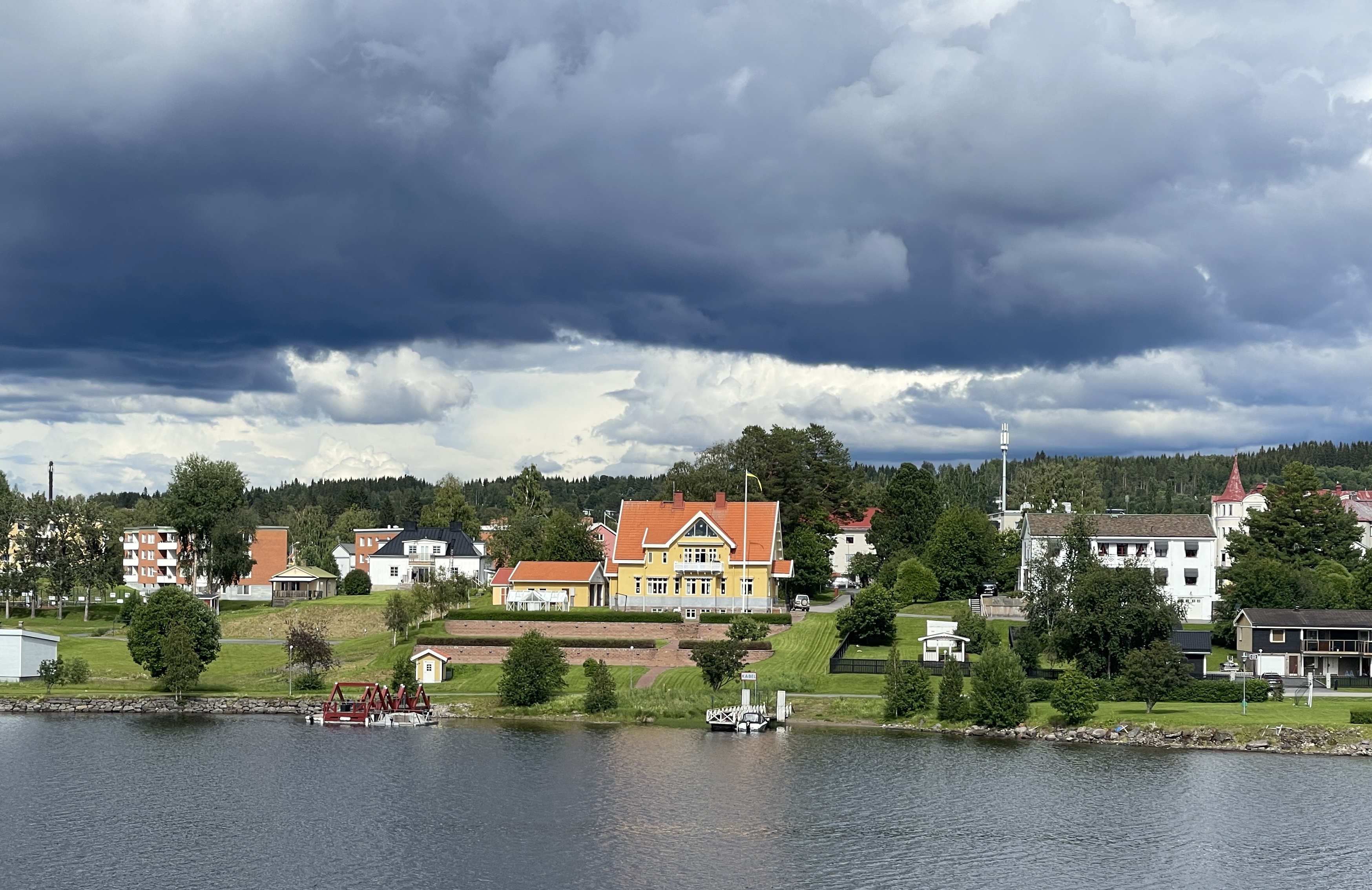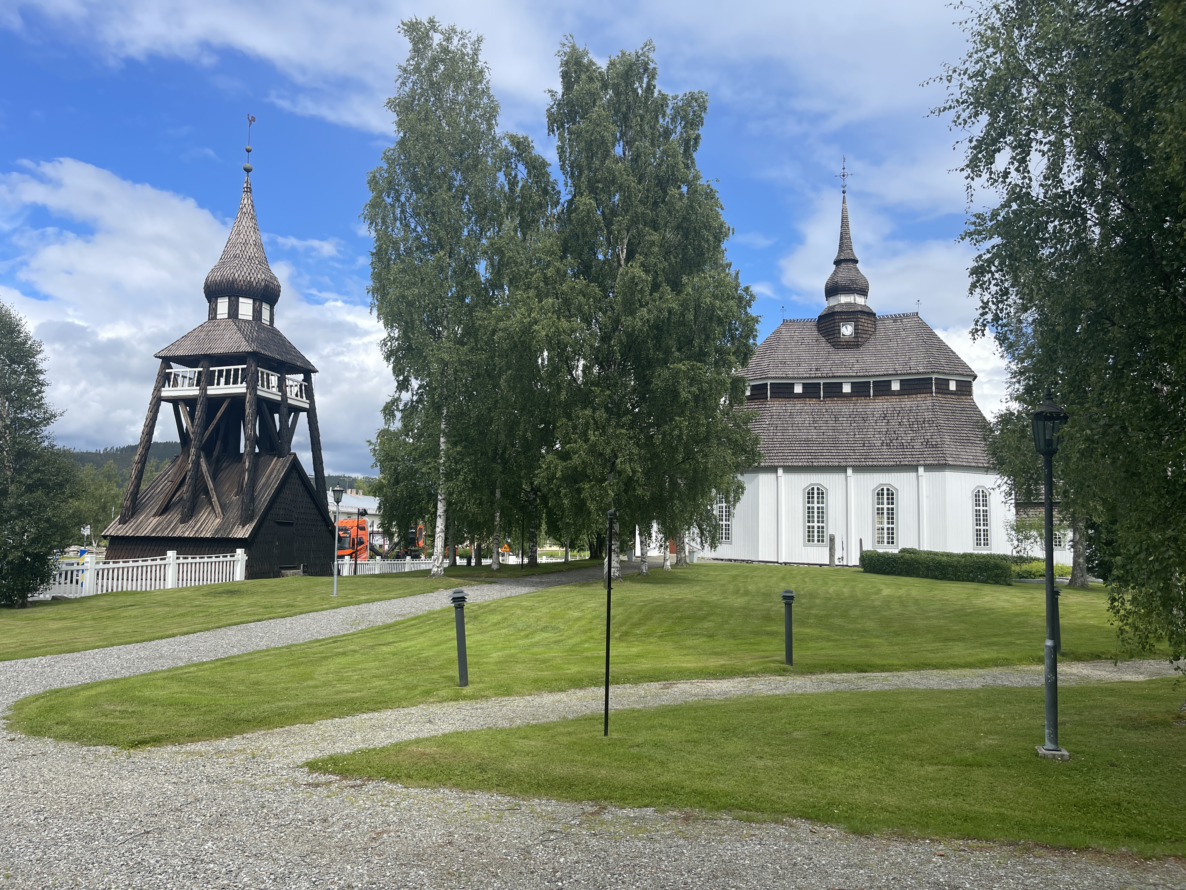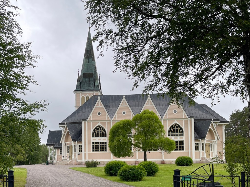 09-07 We reden qua natuur een afwisselende route vandaag. Eerst langs zo’n typische wintersport plaats die volgens mij er in alle landen hetzelfde uit ziet. Daarna de mooie kerk in Vemdalen waarvan het reisboek zegt dat het ook in Zuid Duitsland had kunnen staan.