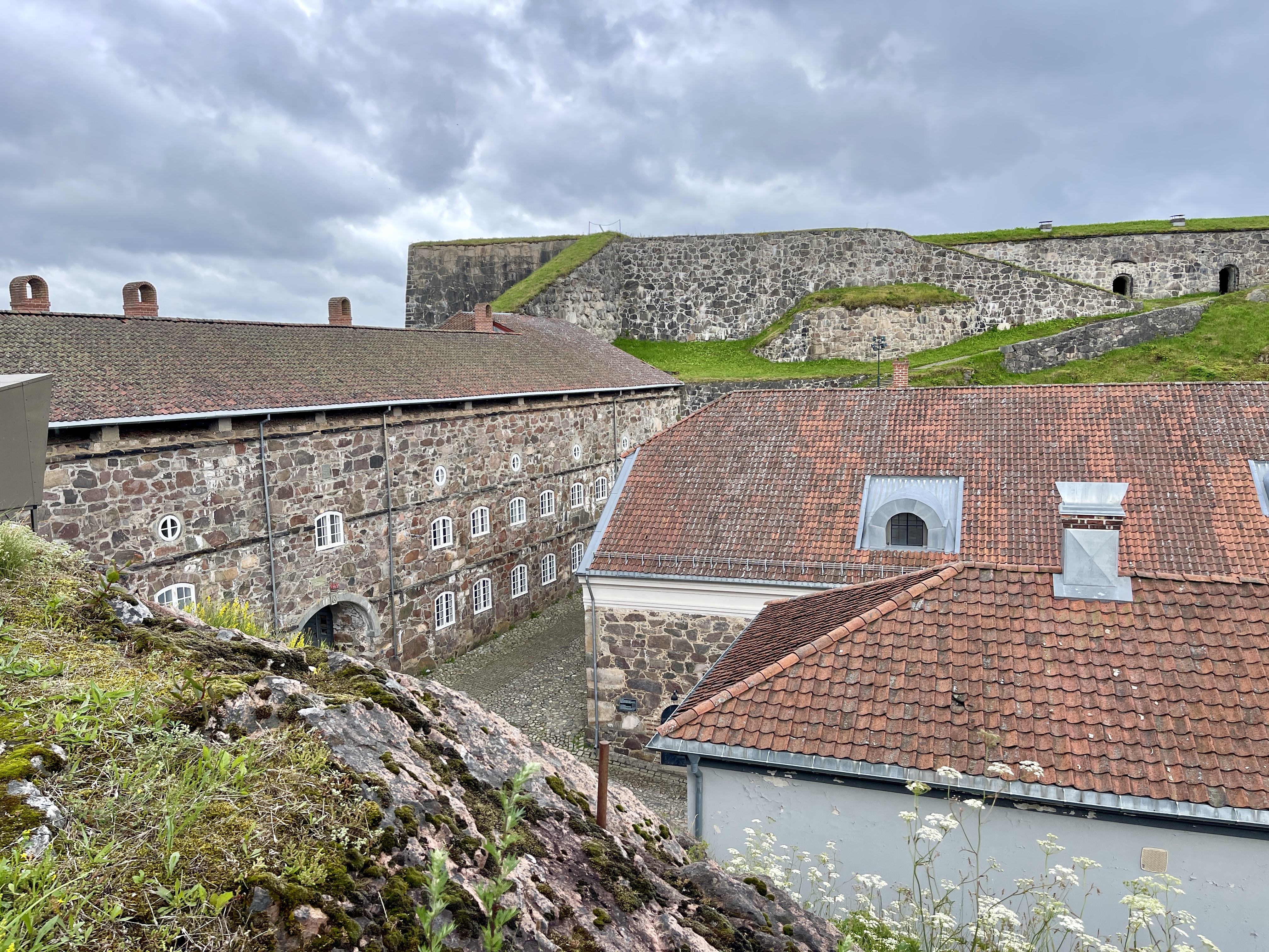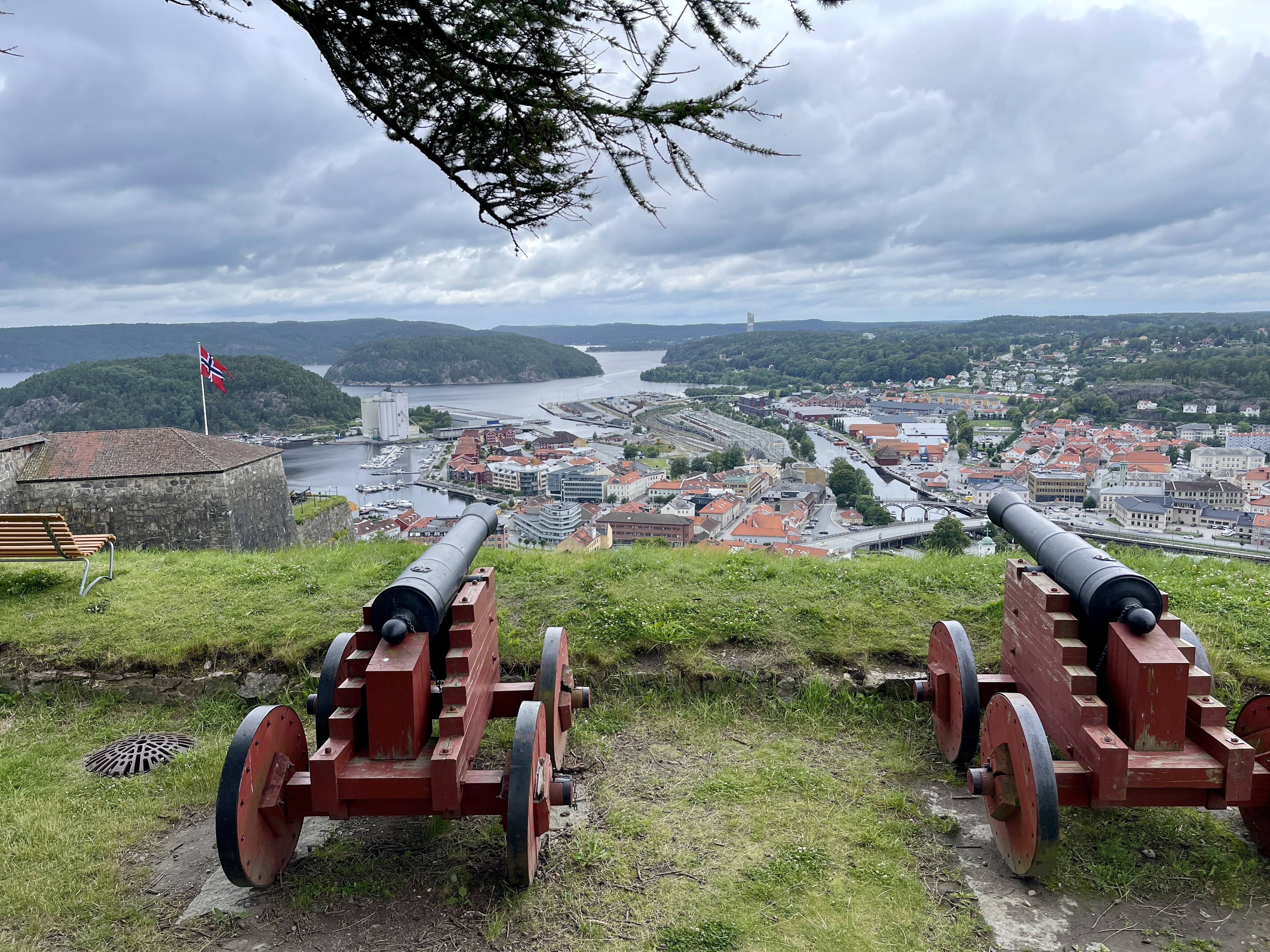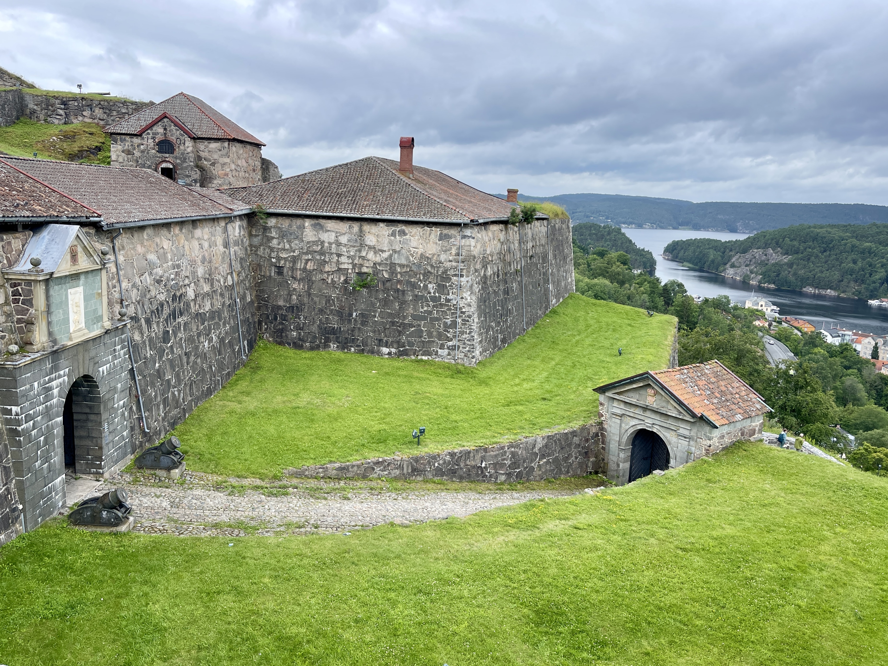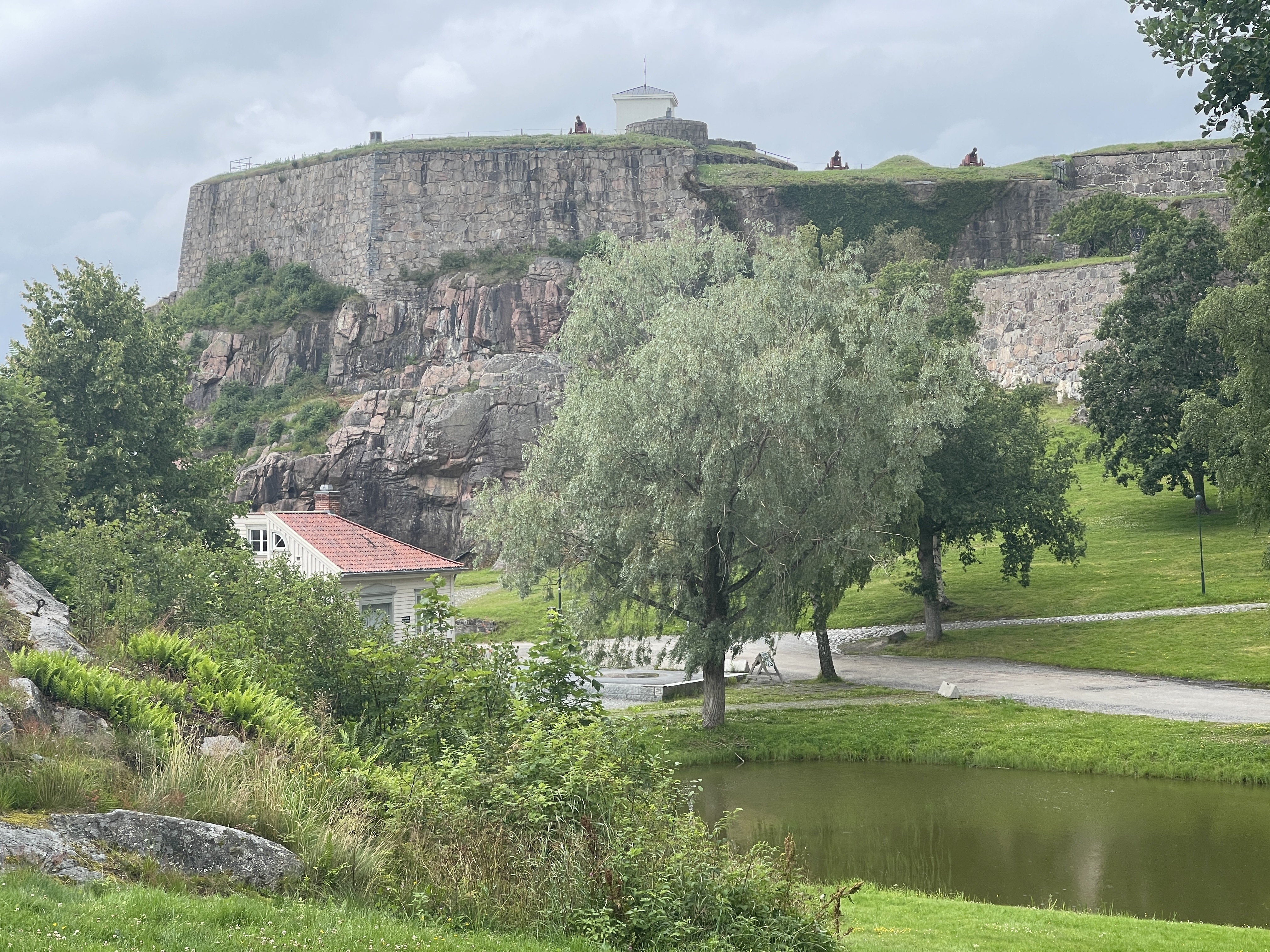 15-07 Het Fredriksten fort in Halden bezocht. Gebouwd in de 17e eeuw en in gebruik tot 1905. Het is destijds gebouwd door Noorwegen en Denemarken tegen de Zweedse invasies. En nu wordt de plaats overspoelt door Noren, die net over de grens, goedkoper inkopen komen doen. De gebouwen van het fort worden nog gebruikt. Heel leuk om daar rond te lopen. LPG getankt in Berg en blij dat we dat gisteren niet hebben gedaan. Ik had wel assistentie nodig en het tanken had heel wat voeten in aarde. Door naar de camper parking in Stömstad. Wij proberen via EasyPark het stageld te betalen. Geen doen. Genoeg hulp en veel goede raad maar het lukt gewoon niet. Dus staan we clandestien. Met de gratis shuttlebus naar het centrum.