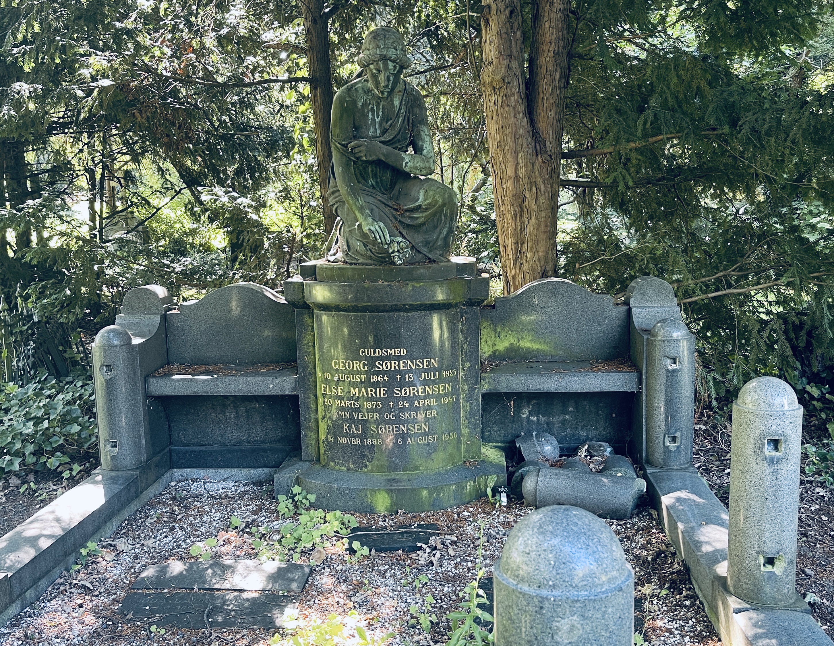 20-09 Vanmorgen aan Mieke voorgesteld om maar een derde nacht in Kopenhagen te blijven. Zoveel te zien en dan hoef je niet in een dag alles na te jagen. Op weg naar het Rosenberg Slot (1607) fietsen we over een grote oude begraafplaats. Prachtige oude bomen en oude graven. En vandaag (op zaterdag) mensen die lekker op het gras zonnen tussen de graven.