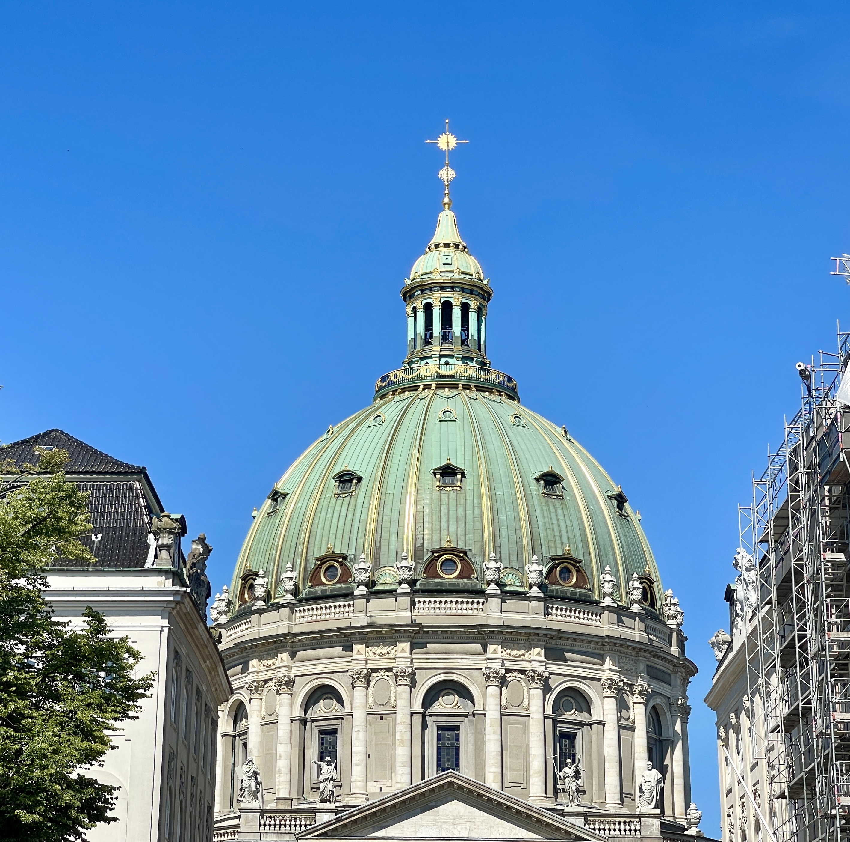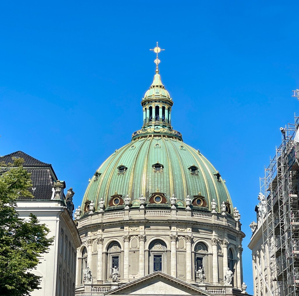 21-09 De derde dag op rij mooi weer. We zijn om tien uur op pad gegaan naar Nyehavn en het was er al druk. De gezellige terrasjes nodigden ons uit om daar even een kop koffie te drinken. Vlak bij is Paleis Amalienburg en vanaf het grote plein kijk je naar de Frederikskerk met zijn prachtige groene koepel. Die koepel zie je steeds weer waar je ook bent. Dan fietsen we naar Christianshavn. En wat hebben we daar van genoten, en heerlijk fietsen en van alles te zien. Duikboot, marine gebouwen, moderne appartementsgebouwen, plekken waar mensen recreëren. En dan nog de vrijstad Christiania. Mieke vond op internet nog een leuk restaurantje waar we een baguette met frittata hebben gegeten. Een perfecte dag.